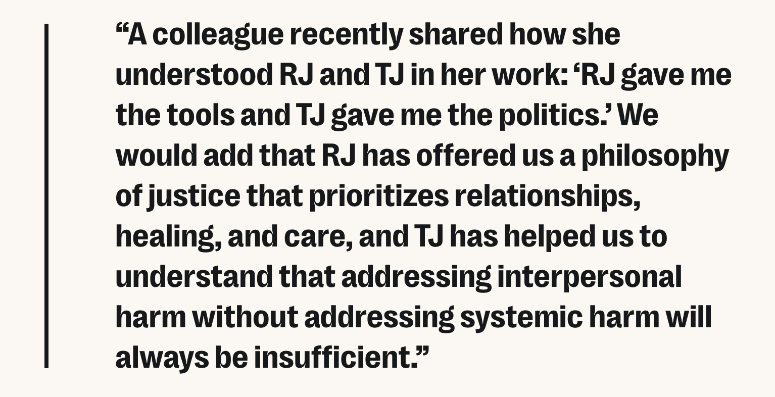 Why understanding restorative and transformative justice on their own terms, and at their best and worst, will help us build more of both.